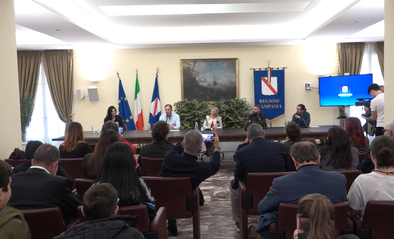 A supportare l’inziativa, il noto cantante napoletano Andrea Sannino, che ha collaborato con l’associazione culturale Ad Alta Voce ETS. La presentazione del video in anteprima del suo celebre brano “Abbracciame” è avvenuta questa mattina nella Sala de Sanctis, sede Regione Campania. La realizzazione del videoclip ha coinvolto 2.000 studenti che hanno cantato il ritornello del brano, insieme al coro That’s Napoli Live Show. Una canzone che rappresenta una ballata d’amore e che mescola la tradizione napoletana con sonorità più moderne.