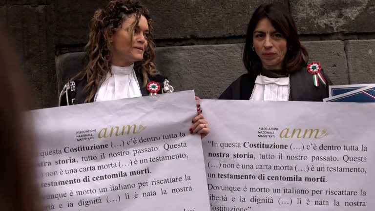 Bilancio positivo per l’Anm al termine della protesta che ha segnato la cerimonia di inaugurazione dell’anno giudiziario del distretto di Corte d’Appello di Napoli. “Io credo – commenta il presidente della giunta distrettuale dell’Anm Napoli Cristina Curatoli nel corso di una conferenza stampa convocata al termine della cerimonia – che la giornata di oggi dimostri come questa iniziativa sia state senz’altro molto sentita dalla magistratura tutta, unita in tutte le sue componenti culturali e associative. Ecco il messaggio che ne esce oggi è quello di una grandissima unità e compattezza proprio perché non siamo di fronte a riforme che modificano piccoli passaggi ma siamo di fronte a forme che minano il cuore della giurisdizione e quindi davanti a questo la magistratura è compatta e oggi l’ha dimostrato”. Le rassicurazioni di Nordio sembra non abbiano fatto breccia. “Le parole del ministro – prosegue il magistrato – non ci tranquillizzano perché un conto è dire che in questa riforma non c’è scritto che autonomia e indipendenza sono lesi, ma sono parole perché la riforma va letta nel suo complesso, anche alla luce di tutti i commenti a margine che la politica dà rispetto a questa riforma che dimostrano invece al contrario come abbia lo scopo di controllare i pubblici ministeri, di controllare ile indagini scomode e in qualche modo di controllare e di attenuare quella che è l’autonomia della magistratura e dei pubblici ministeri, soprattutto nello svolgimento della propria attività lavorativa”. “Non c’è bisogno – la tesi dell’ Anm – che venga scritto in maniera esplicita che il pm è assoggettato al potere politico, perché si percepisce dall’intera riforma nel suo complesso. E soprattutto la maggior parte dei sistemi giudiziari che prevede la separazione delle carriere ha esattamente poi questo progressivo risultato. Non si comprende perché separare delle carriere che di fatto già lo sono e non si comprende perché separare in qualche modo il giudice dal pubblico ministero quando i migliori pubblici ministeri sono quelli che hanno fatto anche il giudice, perché hanno condiviso la medesima cultura della giurisdizione, una cultura finalizzata solo ed esclusivamente alla ricerca della verità e all’accertamento dei fatti. I pubblici ministeri chiedono le archiviazioni, chiedono le assoluzioni e lavorano per cercare la verità dei fatti per tutelare tutti i cittadini allo stesso identico modo anche da qualunque tipo di cittadini, non soltanto i potenti”. Sullo sfondo si intravede la possibilità di una battaglia referendaria. Ipotesi cui l’Anm di Napoli al momento non vuole pensare: “Per adesso non immaginiamo nessuna campagna anche perché l’associazione nazionale magistrati spera che questo non avvenga. Se dovesse avvenire – precisa Curatoli – valuteremo che cosa fare, ma non tanto semplicemente per manifestare una forma di opposizione, ma anche per farci ascoltare dai cittadini che dovranno essere quantomeno consapevoli del fine di questa riforma. Detto ciò – conclude il numero 1 dell’ Anm di Napoli – qualunque riforma verrà accettata dalla magistratura come è giusto che sia. Però dobbiamo sicuramente informare i cittadini perché abbiamo il dovere di farlo quando sono in gioco l’autonomia e l’indipendenza dei magistrati”.