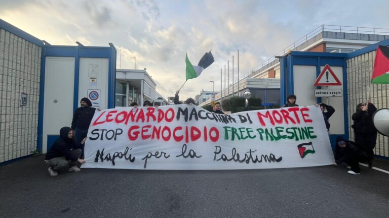 “Oggi siamo qui per dire chiaramente che il governo italiano e la Leonardo sono complici del genocidio del popolo palestinese: il rifornimento di armi da parte della prima azienda italiana per produzione bellica all’esercito di Nethanhyau rappresenta per noi un punto di non ritorno, è il momento delle azioni concrete contro i complici di questo sterminio”, dichiarano gli attivisti in una nota.