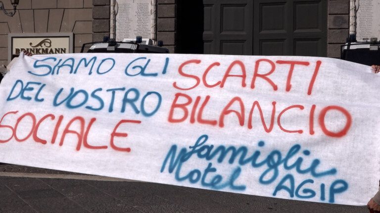 “Questo è il fallimento dell’amministrazione comunale. Il Comune non dovrebbe fare gli sgomberi senza soluzioni alternative. Non è giusto mettere le famiglie in mezzo a una strada”. Così Eleonora Genovese, una delle donne entrate in Sala Giunta e che dalle prime luci dell’alba sono, insieme ad altre famiglie, accampate davanti la sede del Comune. Le donne hanno chiesto la parola per spiegare la loro condizione. Le famiglie tra il 7 e l’8 ottobre saranno sgomberate dall’ex motel Agip e da altri alloggi occupati. “Tra noi c’è chi ha minori, disabili, anziani – ha proseguito – è un anno che chiamiamo il Comune e nessuno ha risposto alle nostre richieste. Darci dei soldi non risolve il problema perché per fittare una casa servono un lavoro e garanzie che non abbiamo”. Con lei anche Nunzia, mamma di un ragazzo disabile. “Come me ci sono altre mamme che crescono i loro figli che hanno difficoltà in condizioni precarie – ha raccontato – tra pochi giorni ci buttano fuori e noi non sappiamo dove andare , cerchiamo un aiuto e non una presa in giro. Che cosa dobbiamo fare per farci ascoltare? Dobbiamo inginocchiarci? Aiutateci, vi prego. Noi non siamo un protocollo, siamo persone”.