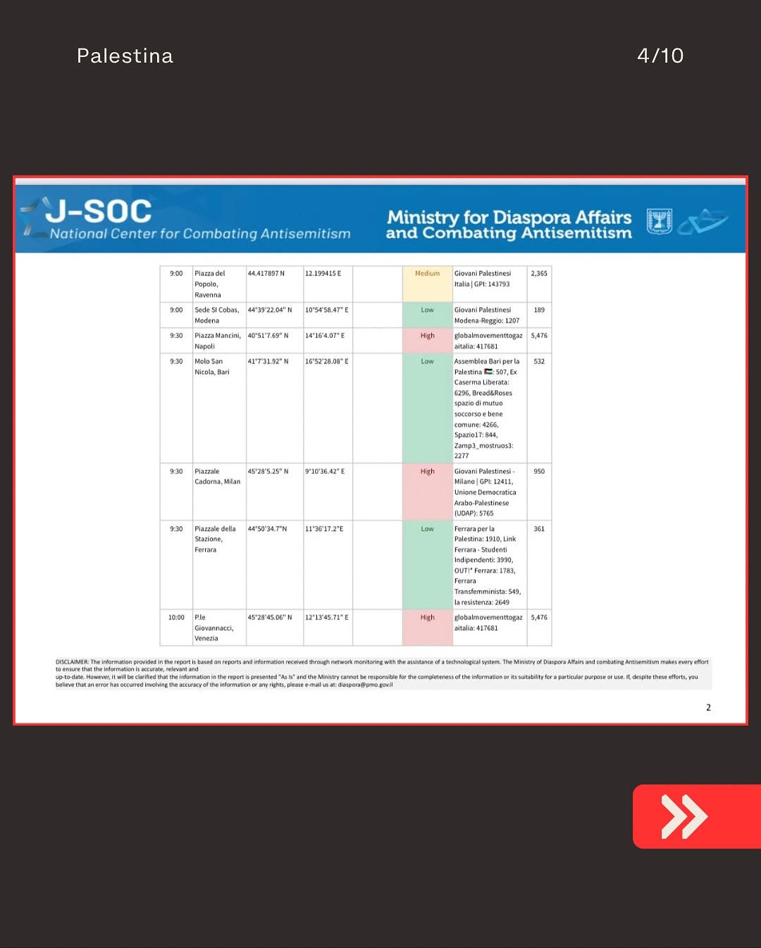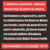 Dall’Italia, in tantissime piazze si sono tenute iniziative a sostegno della spedizione umanitaria e, a Napoli, diverse centinaia di persone si hanno dato vita a un corteo partito da Largo Berlinguer e terminato in piazza Municipio. A ridosso di piazza del Plebiscito, la dimostrazione con dei fuochi d’artificio. “Portiamo i rumori delle bombe sotto la Prefettura”, la loro spiegazione. A partecipare, anche molti liceali e universitari, attivi sostenitori della causa palestinese. Tra questi, anche diversi membri del CAU Napoli, organizzazione definita potenzialmente antisemita da un recente dossier ministeriale israeliano.