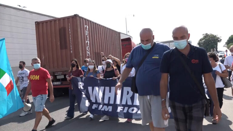 Nuova protesta a Napoli dei lavoratori della Whirlpool. Gli operai sono partiti in corteo da via Argine, sede dello stabilimento di elettrodomestici nel quale hanno svolto la loro vita lavorativa e si sono diretti verso il porto del capoluogo campano. Ad aprire il corteo lo striscione di Fim, Fiom e Uilm, i sindacati di categoria che sono al fianco dei lavoratori da quel 31 maggio 2019, inizio del loro calvario lavorativo, nel quale ricevettero la notizia della volontà di chiusura perpetrata dalla multinazionale americana. Lo stabilimento ha chiuso i battenti lo scorso autunno e ancora non sono giunte soluzioni lavorative né da parte del colosso internazionale né dal Governo.