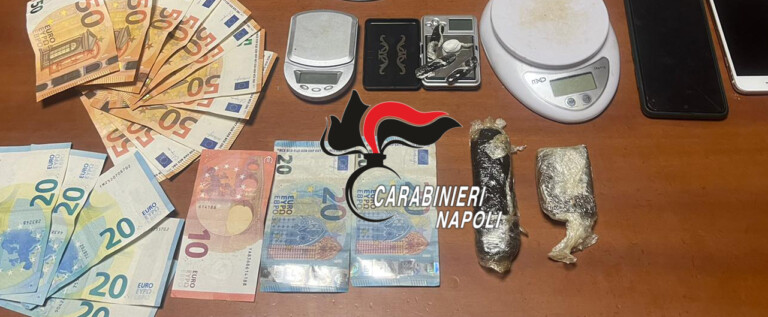 Controlli notturni a Monte di Procida per i Carabinieri della locale stazione. A finire in manette il 19enne Giovanni Di Meo*. I militari – nel cuore della notte – hanno perquisito la sua abitazione e lì hanno rinvenuto e sequestrato una dose di cocaina, 130 grammi di hashish suddiviso in due panetti e 3 dosi, 3 bilancini di precisione e la somma contante di 660 euro ritenuta provento del reato. Durante la perquisizione i Carabinieri hanno trovato anche 2 banconote false da 20 euro contraffatte.