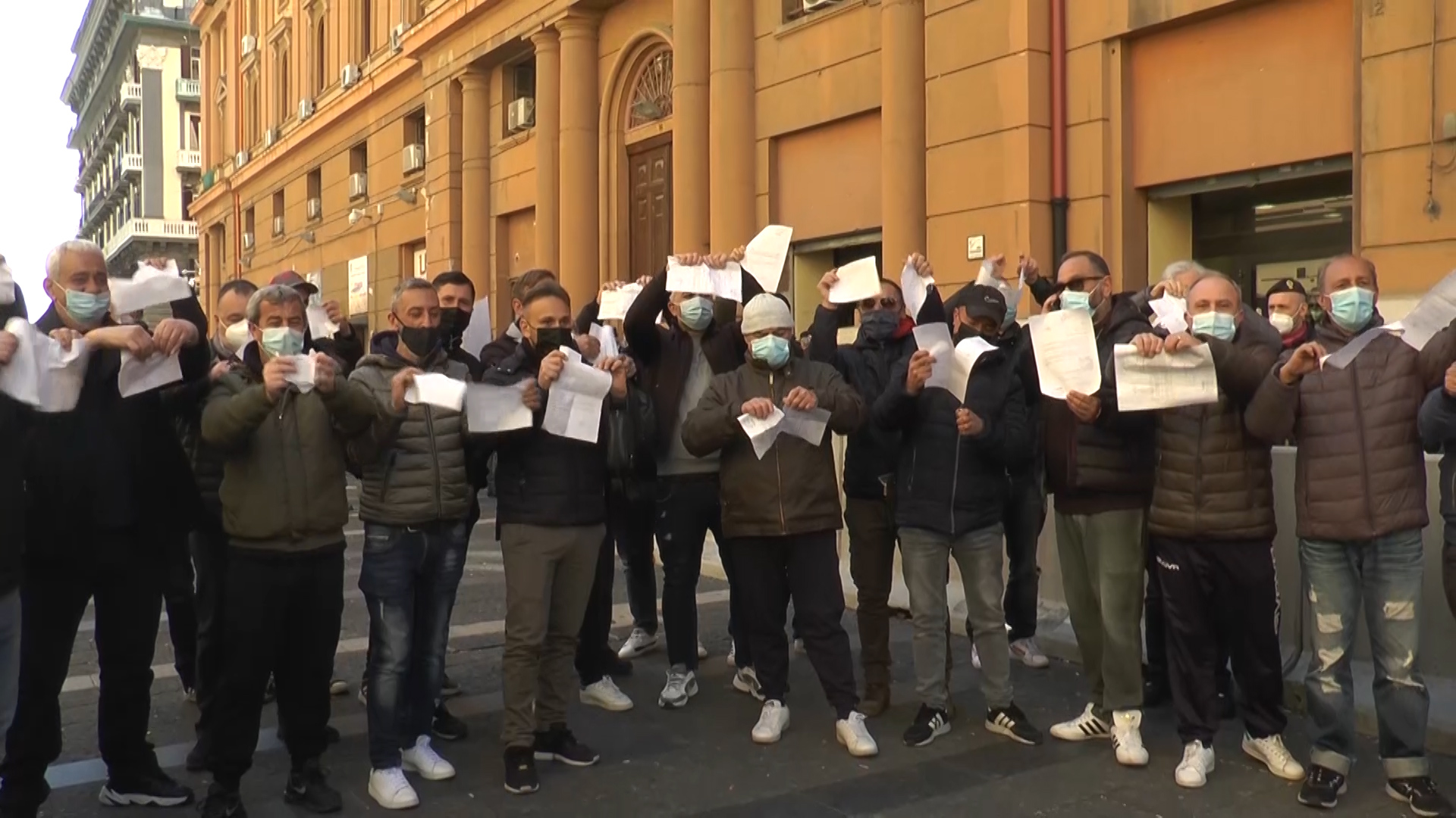 Continuano i tassisti con la loro protesta nei confronti della regione Campania, questa volta in schieramento sotto palazzo Santa Lucia. In molti hanno incendiato le