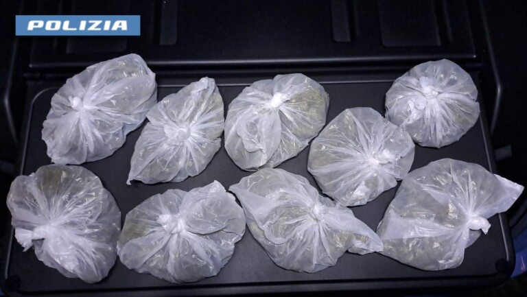 I poliziotti, prontamente intervenuti, hanno raggiunto e bloccato il prevenuto trovandolo in possesso di una shopper contenente 9 bustine di marijuana del peso di 462 grammi circa e di 120 euro, suddivisi in banconote di diverso taglio.
