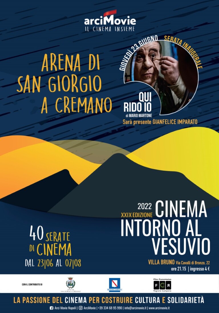 Il cinema e le sue stelle animano l’afosa estate napoletana con quaranta serate all’aperto. Sarà la speciale cornice dei giardini di Villa Bruno, a San Giorgio a Cremano, a ospitare le proiezioni accompagnate da registi e attori alle quali si aggiungeranno anche incontri sul cinema e altri eventi speciali. Torna “Cinema intorno al Vesuvio”, storica rassegna di cinema all’aperto curata dall’associazione Arci Movie e realizzata con il contributo del Comune di San Giorgio a Cremano, della Regione Campania e della Film Commission Regione Campania, che inaugura la sua XXIX edizione giovedì 23 giugno 2022 alle ore 21.15, continuando per quaranta serate fino al 7 agosto.