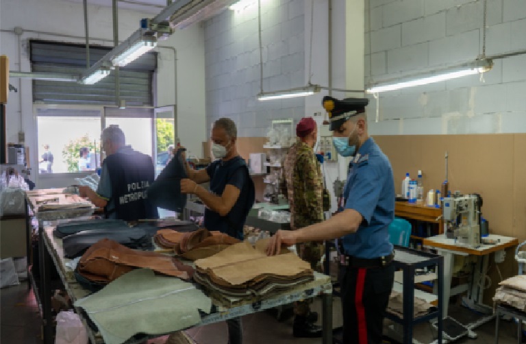 Una pelletteria che fabbricava borse per un prestigioso marchio francese. Borse rivolte ad una clientela facoltosa, in grado di spendere anche 2300 euro per un solo prodotto.