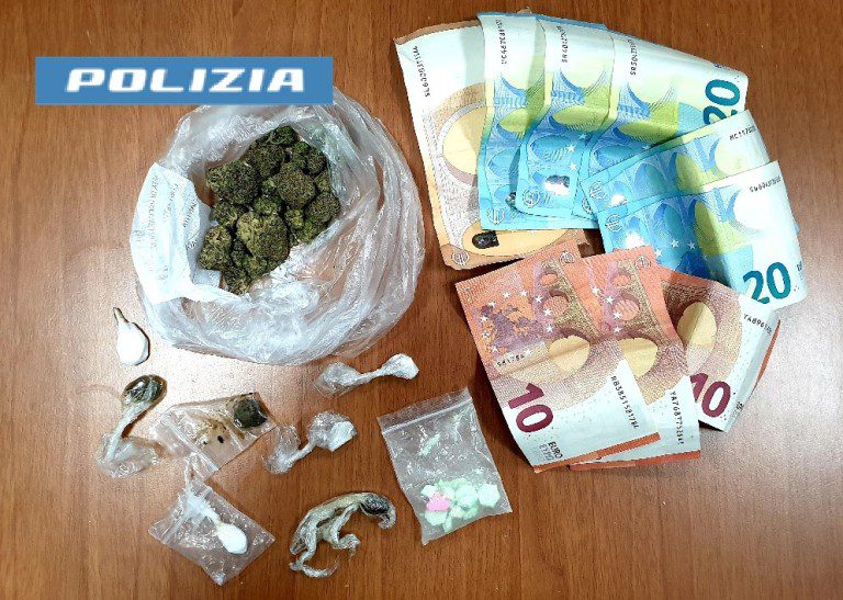 Gli agenti, recuperato l’involucro contenente 4 pastiglie di ecstasy del peso di 3 grammi circa, hanno raggiunto e bloccato il prevenuto trovandolo in possesso di 4 involucri di cocaina del peso di 2 grammi circa, 3 involucri di hashish del peso di 3 grammi circa, un involucro di marijuana del peso di 10 grammi circa e 180 euro, suddivisi in banconote di diverso taglio, chiaro provento dell’attività delittuosa.
