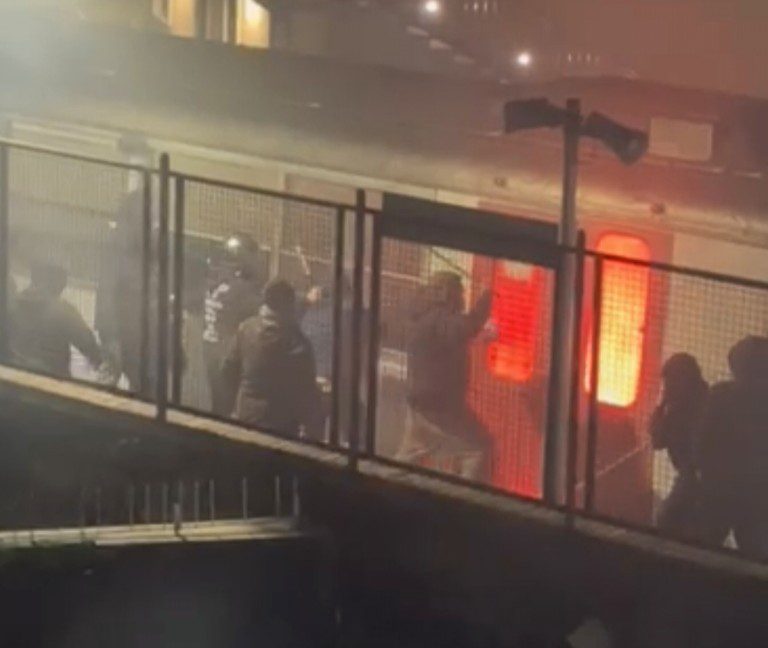 Siamo alla stazione della Circumvesuviana di Castellammare. Sono da poco passate le 20, qui il treno che ospita i tifosi del Sorrento Calcio, provenienti dalla trasferta vittoriosa di Torre del Greco contro la Turris, è pronto a raggiungere la stazione di Sorrento.
