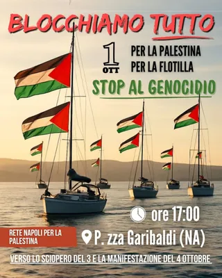 Per questo pomeriggio, invece, collettivi e organizzazioni riunite nella Rete Napoli per la Palestina hanno dato appuntamento alla società civile in piazza Garibaldi alle ore 17.00 per una nuova manifestazione per Gaza. In supporto al viaggio della Flotilla, ma anche “verso lo sciopero del 3 e la manifestazione a Roma del 4 ottobre”, come recita la locandina dell’appuntamento ricondivisa da tantissimi in rete in questi minuti.