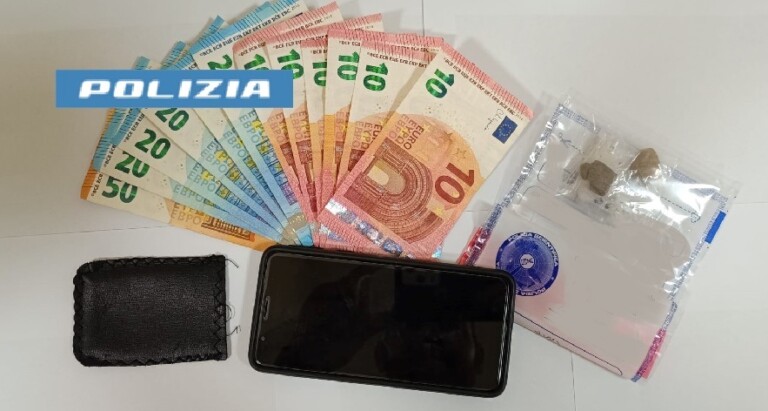Gli operatori, prontamente intervenuti per interrompere l’iter criminoso, hanno raggiunto e bloccato l’indagato trovandolo in possesso di due involucri di cocaina del peso di circa 1 grammo, due pezzi di hashish di circa 2,8 grammi e 210 euro suddivisi in banconote di vario taglio.